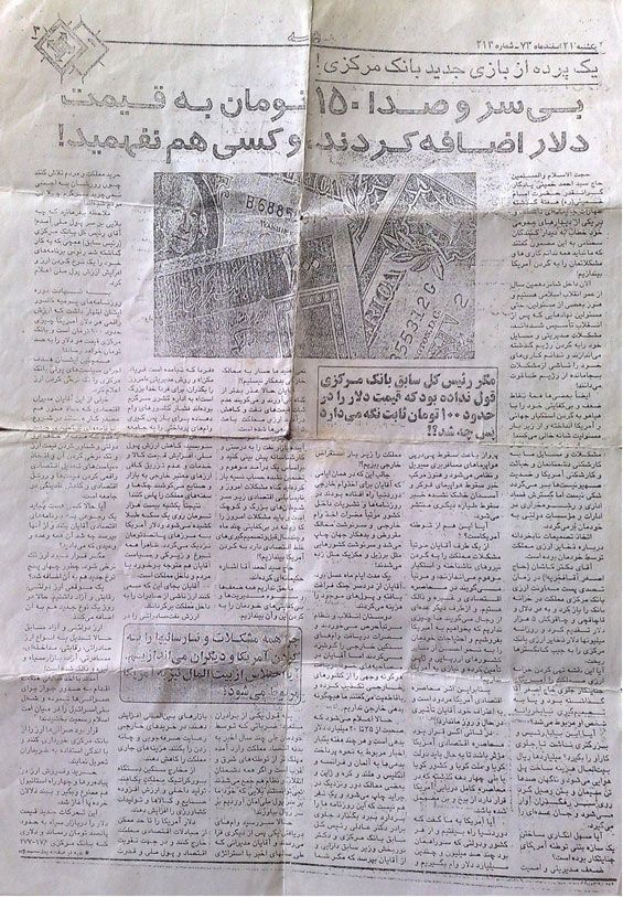 ۱۰٫ «بیسر و صدا ۱۵۰ تومان به قیمت دلار اضافه کردند و کسی هم نفهمید»، هفتهنامه امید، یکشنبه ۲۱ اسفند ۱۳۷۳، شماره ۲۱۴، ص ۳-۴