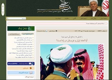 البته این درحالی است که سایت رسمی رفسنجانی که پیشتاز ارتباط با آمریکا و عربستان سعودی است، وی را منجی شماره یک بهبود رابطه ایران و عربستان معرفی کرده و حتی از تعابیر خاصی همچون «رابطه با عربستان، بدون هاشمی هرگز!» استفاده میکند، و با آب و تاب فراوان به بازتاب «بوسه پرسروصدا بر پیشانی هاشمی» توسط سفیر عربستان میپردازد و آن را در اوج اختلافات دو کشور، نهایت احترام سفیر عربستان به یکی از عالیترین مقامات جمهوری اسلامی میداند.