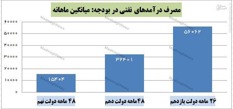 در حالی که مسئولان دولت فعلی بارها با شیوههای تبلیغاتی با اشاره به قیمت بالای 100 دلار نفت در دولت قبل و مقایسه آن با قیمت کنونی آن، تلاش کردهاند در کسری درآمدهای خود اغراق نمایند، آمارهای بانک مرکزی نشان میدهد با توجه به عوامل فوق (سهم دولت از درآمد نفت و نرخ ارز مرجع)، مصرف درآمدهای نفتی در بودجههای سالانه دولت یازدهم به هیچ عنوان نسبت به دولت قبل کاهش پیدا نکرده است.