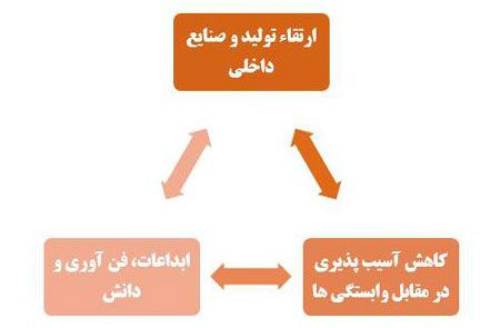 تجربه‌ی آمریکا در ۱۵۰ سال اخیر نشان داده است این کشور با ارتقای تولید و صنایع داخلی، توجه به ابداع، فناوری و دانش و همچنین کاهش وابستگی به نفت، توانسته است بخشی از آسیب­‌پذیری اقتصاد داخلی خود را کاهش داده و به رشد اقتصادی دست یابد. صرف­‌نظر از جهت­‌گیری­‌های ارزشی و نیز پیامدهای ناگوار اجرای سرمایه­‌داری در این کشور نظیر: افزایش بی‌عدالتی و فاصله‌ی طبقاتی و افزایش آمار فقر و جرم و جنایت و آسیب‌های اخلاقی، می­‌توان گفت سه تجربه­‌ی این کشور که در سیاست­‌های کلی اقتصاد مقاومتی و سخنان مقام معظم رهبری نیز بارها مورد تأکید قرار گرفته و از تولید ملی به‌عنوان ستون فقرات اقتصاد مقاومتی یاد شده و بر رهایی از وابستگی به نفت و اقتصاد دانش بنیان نیز تأکید جدی شده است، می­‌توانند به‌عنوان اصولی تجربه شده، موجبات مقاوم‌­سازی بیشتر اقتصاد کشور را فراهم آورد.