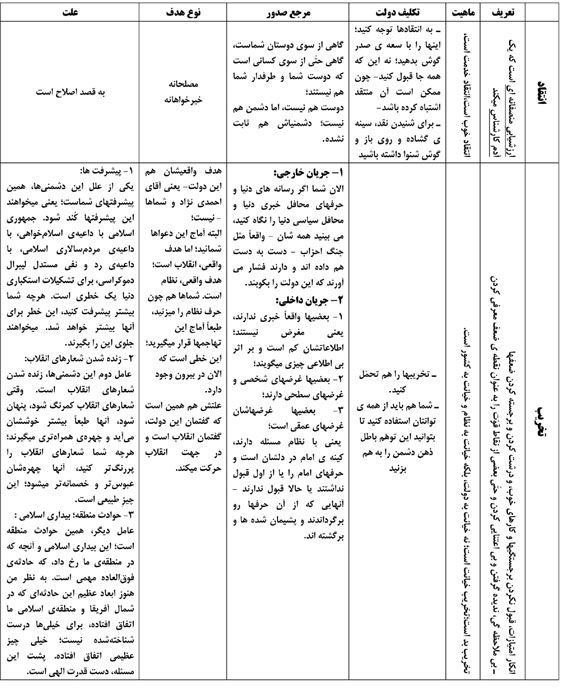 جدول خلاصه شده بخش دوم مبتنی بر «بررسی نوع نگرش های مقابل دولت های نهم و دهم، جریان شناسی و علل وقوع آن ها» و نتیجه گیری نهایی این نوشتار، تقدیم می گردد.
