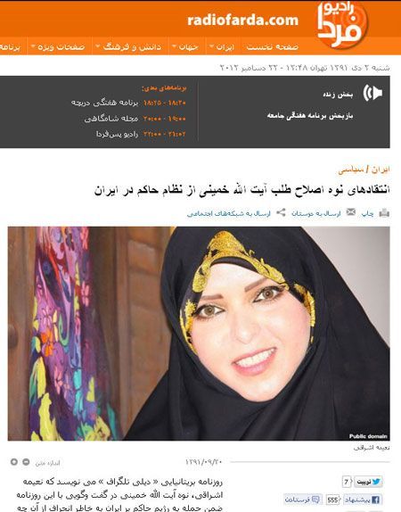 خانم نعیمه اشراقی که مدتی است در شبکه های اجتماعی فعال شده و همانند خواهرش زهرا اشراقی (همسر محمدرضا خاتمی) سخنانی جنجالی در رابطه با حجاب و انتخابات بیان کرده که مورد استقبال فتنه گران ضد انقلاب قرار گرفته است چندی قبل مصاحبه ای در خصوص برخی مسائل و رویدادها در ایران با نشریه دیلی تلگراف انگلیس انجام داد.