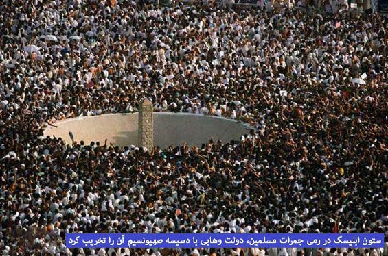 در مکانی که قبلاً در مراسم حج برای رجم شیطان بود، ستون اُبِلیسک وجود داشت اما دولت وهّابی با هماهنگی صهیونیستها و به صورت حساب شده و ظریف ، بعد از آن صحنه ای که تعدادی از حجاج به خاطر ازدحام برای رجم شیطان کشته شدند، بی سر و صدا اُبِلیسک ها را برداشتند و به جای آن یک دیوار درست کردند. اکنون مردم در مراسم حج یک دیوار را سنگ می زنند. واقعیت این است که هیچ کس نمی داند اُبِلیسک نماد چه بوده است و چرا حذف شد.