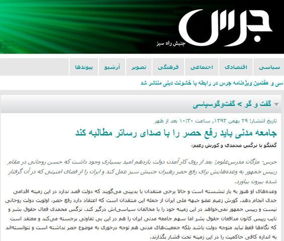 به گزارش «پايگاه خبري تحليلي رئيس جمهور ما»؛ وب‌سایت «جرس» از پایگاه‎های اینترنتی جریان فتنه، در گفتگو با دو تن از چهره های اپوزیسیون به موضوع "رفع حصر" پرداخته است.