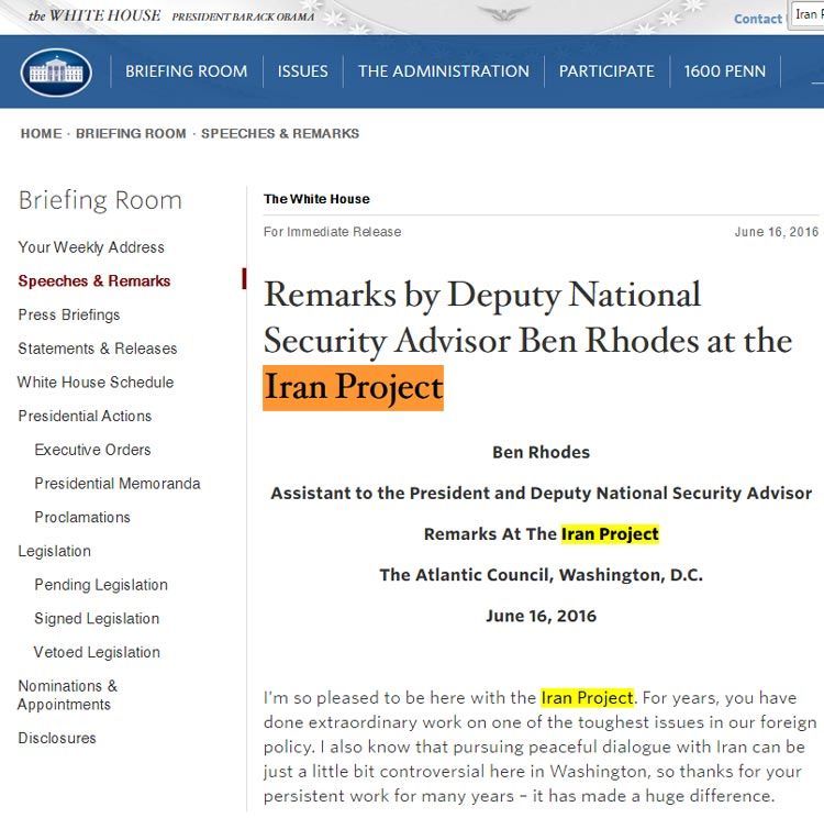 بن رودز (معاون مشاور امنیت ملی کاخ سفید) ادعا کرد بعد از روی کار آمدن حسن روحانی در سال 92، اوباما به او نامه فرستاده و برای اولین بار اوباما پاسخی سازنده دریافت کرده است؛ نکته قابل توجه این که متن نامه درباره تمرکز بر مذاکرات هسته ای بوده است!