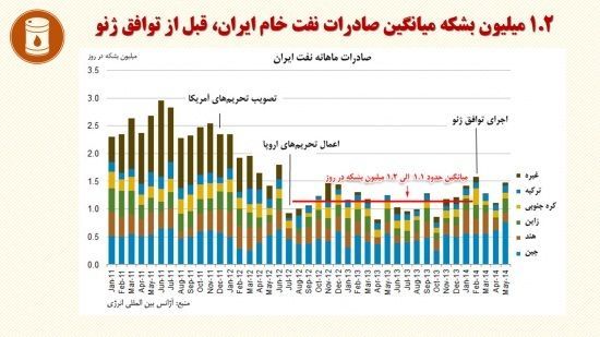 مهندس ميرزايي با اشاره به عدم موفقيت آمريکا در تحريم کاهش فروش نفت ايران به صفر، يکي از ترفندهاي آمريکا در مذاکرات را حفظ وضعيت موجود به عنوان امتياز دانست و گفت: ما بايد خيلي توجه داشته باشيم که امتيازي که به ما ميدهند امتياز مهمي باشد يعني طوري نباشد که يک جاهايي را خودشان تحريم کردند و بعد آن تحريم موفق نبوده است و بيايند حفظ آن وضعيت را به عنوان امتياز به ما بدهند. ما در توافق ژنو هم همين را داشتيم مثلاً در مورد تحريم نفتي با اين که آنها قانون داشتند که هر ۱۸۰ روز کشورهاي خريدار نفت ايران خريد نفتشان را کاهش چشمگير بدهند؛ يا حتي بعد از آن قانون داشتند که به صفر برسد فروش نفت ايران يعني هيچ کسي از ايران نفت نخرد. اما طبق اين نمودار ميبينيم که در مدت يک سال و نيم قبل از اجراي توافق، يعني از تير ۹۱ تا دي ۹۲ فروش نفت ايران ثابت بوده است. يعني روي عدد ۱٫۱ميليون بشکه و يا ۱٫۲ ميليون بشکه در روز. يا اين که گزارشهاي بانک مرکزي حتي عددهاي بيشتر از اين را ميگويد. ميگويد که در سال ۹۱، ۸/۱ بوده است و در سال ۹۲، ۶/۱ ميليون بشکه در روز بوده است. حالا آمدند در توافق ژنو گفتند که همين سقف فعلي حفظ شود. اين سقف فعلي را يکسال و نيم خودشان نتوانستند کم کنند. يعني تلاش داشتند ولي موفق نشدند. در واقع روغن ريخته را نذر امامزاده کردند. يا در مورد صادرات پتروشيمي، مشکل صادرات پتروشيمي ما اين نبوده است که ما مشتري نداشتيم. مسئولين گفتند که براي خريد محصولات ما صف کشيدند يعني ما مشتري داريم، محصول نداريم بدهيم. اين تعليق صادرات پتروشيمي امتياز خاصي نيست يعني آن چيزهايي که آنها تحريم کرده بودند و موفق نشده است.