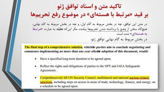 ۴- تعليق برخي تحريمها در توافق ژنو امتياز خاصي نبود، چون تحريم بياثر شده بود