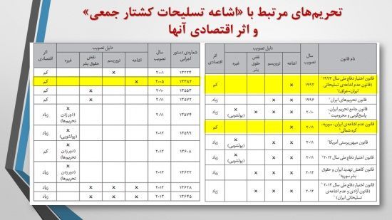 کارشناس ارشد تحريم با تذکر اين نکته که منع اشاعه، صرفاً هستهاي نيست؛ موشکهاي بالستيک، سلاحهاي شيميايي و ميکروبي، پرتابگرها و سامانههاي پرتاب را نيز شامل ميشود، افزود: ما نميتوانيم بگوييم تحريمهاي منع اشاعه، فقط شامل تحريمهاي مرتبط با هستهاي ميشود و اين دو مترادف هستند. در اين جدول اين دو تا را تفکيک کردند.