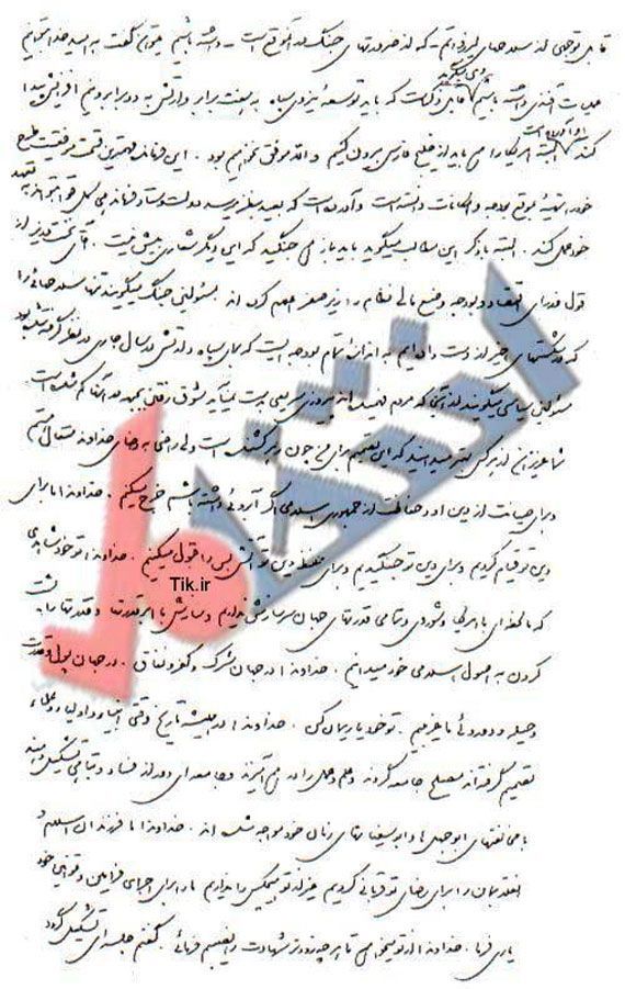 خداوندا، ما فرزندان اسلام و انقلابمان را برای رضای تو قربانی كردیم غیر از تو هیچكس را نداریم ما را برای اجرای فرامین و قوانین خود یاری فرما، خداوند از تو میخواهم تا هر چه زودتر شهادت را نصیبم فرمائی. گفتم جلسهای تشكیل گردد آتش بس را به مردم تفهیم نمایند. مواظف باشید ممكن است افراد داغ و تند با شعارهای انقلابی شما را از آنچه صلاح اسلام است دور كنند، صریحا میگویم باید تمام همتتان در توجیه این كار باشد. قدمی انحرافی حرام است و موجب عكس العمل میشود. شما میدانید كه مسئولان رده بالای نظام با چشمی خونبار و قلبی مالامال از عشق به اسلام و میهن اسلامیمان چنین تصمیمی گرفتهاند خدا را در نظر بگیرید و هر چه اتفاق میافتد از دوست بدانید، و السلام علینا و علی عباد الله الصالحین.
